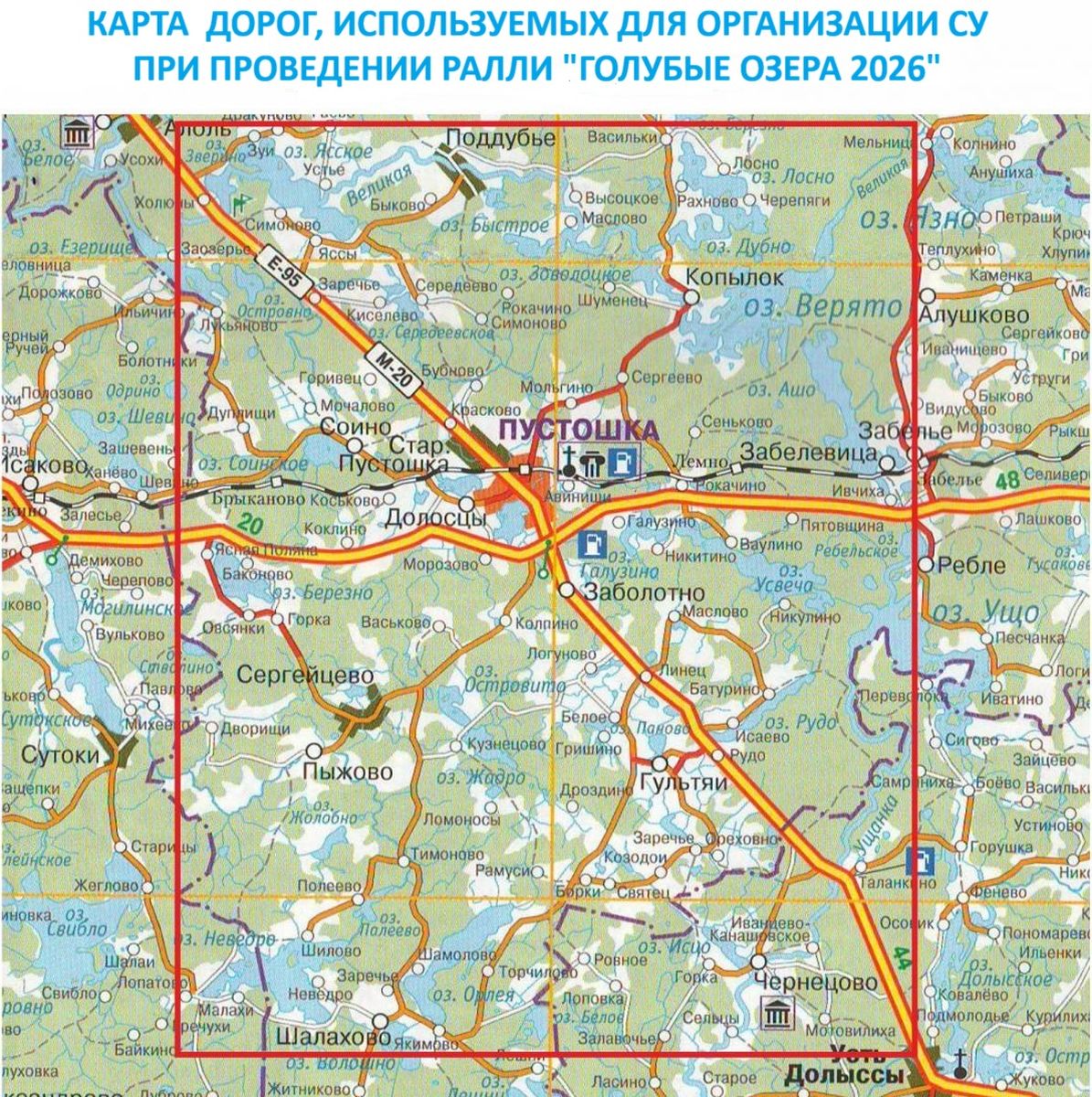 КАРТА ДОРОГ, ИСПОЛЬЗУЕМЫХ ДЛЯ ОРГАНИЗАЦИИ СУ ПРИ ПРОВЕДЕНИИ РАЛЛИ "ГОЛУБЫЕ ОЗЁРА 2026"